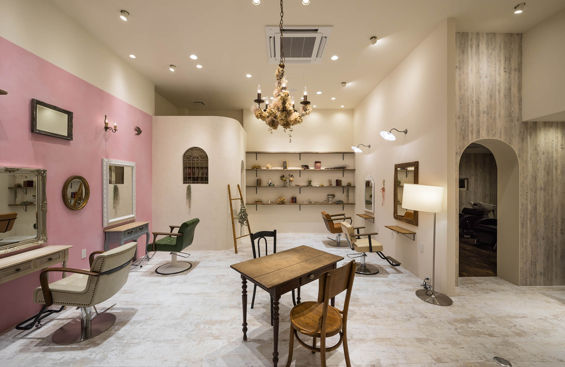 フェミニンフレンチがコンセプトの可愛いディスプレイに囲まれた女性がワクワクできるサロン。