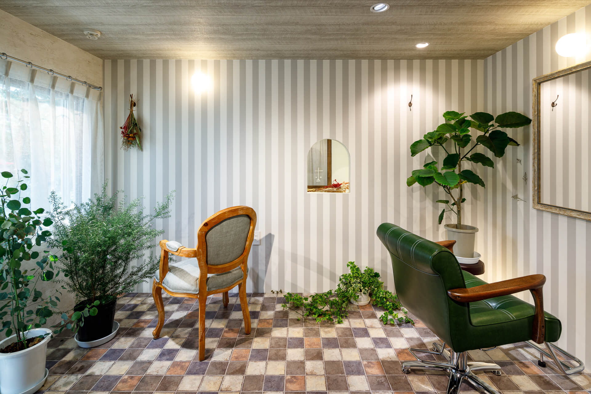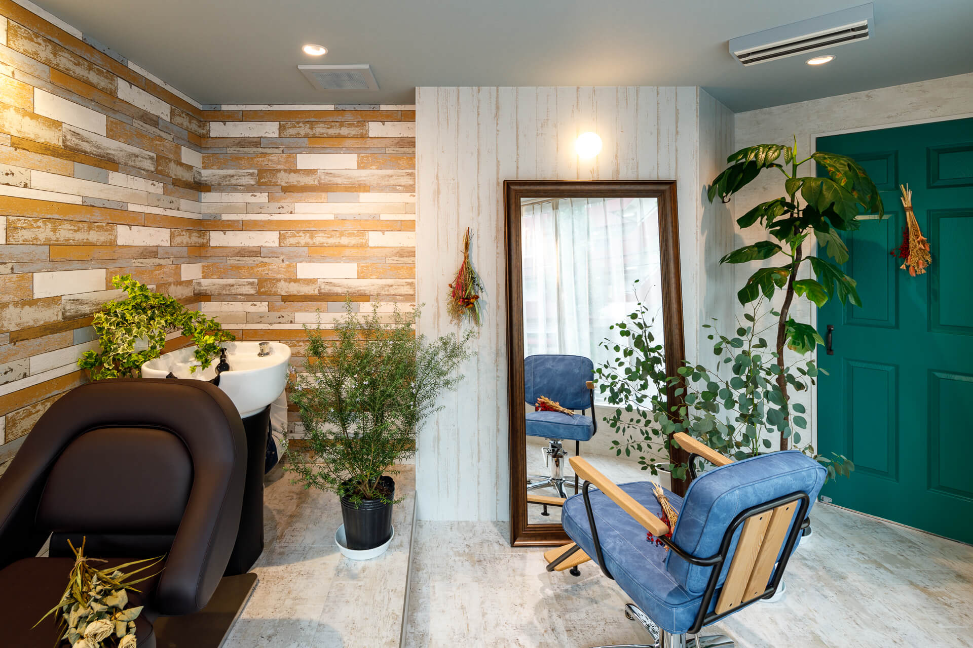 南イタリアのアルベロベッロの街並をイメージした全室個室のプライベートサロン。ウインドウに面したアプローチから各部屋にアクセスする作りになっており5室ある各部屋は全て異なるデザイン。ヨーロッパの雰囲気を感じられるマテリアルを多数使用し部屋ごとにテーマを変えてデザインした。各部屋にシャンプーを設置しており部屋の中ですべての施術を受けられるサロン。